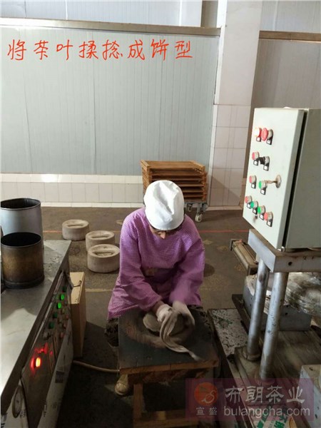 圖是對汽蒸后的茶葉揉捻成餅型